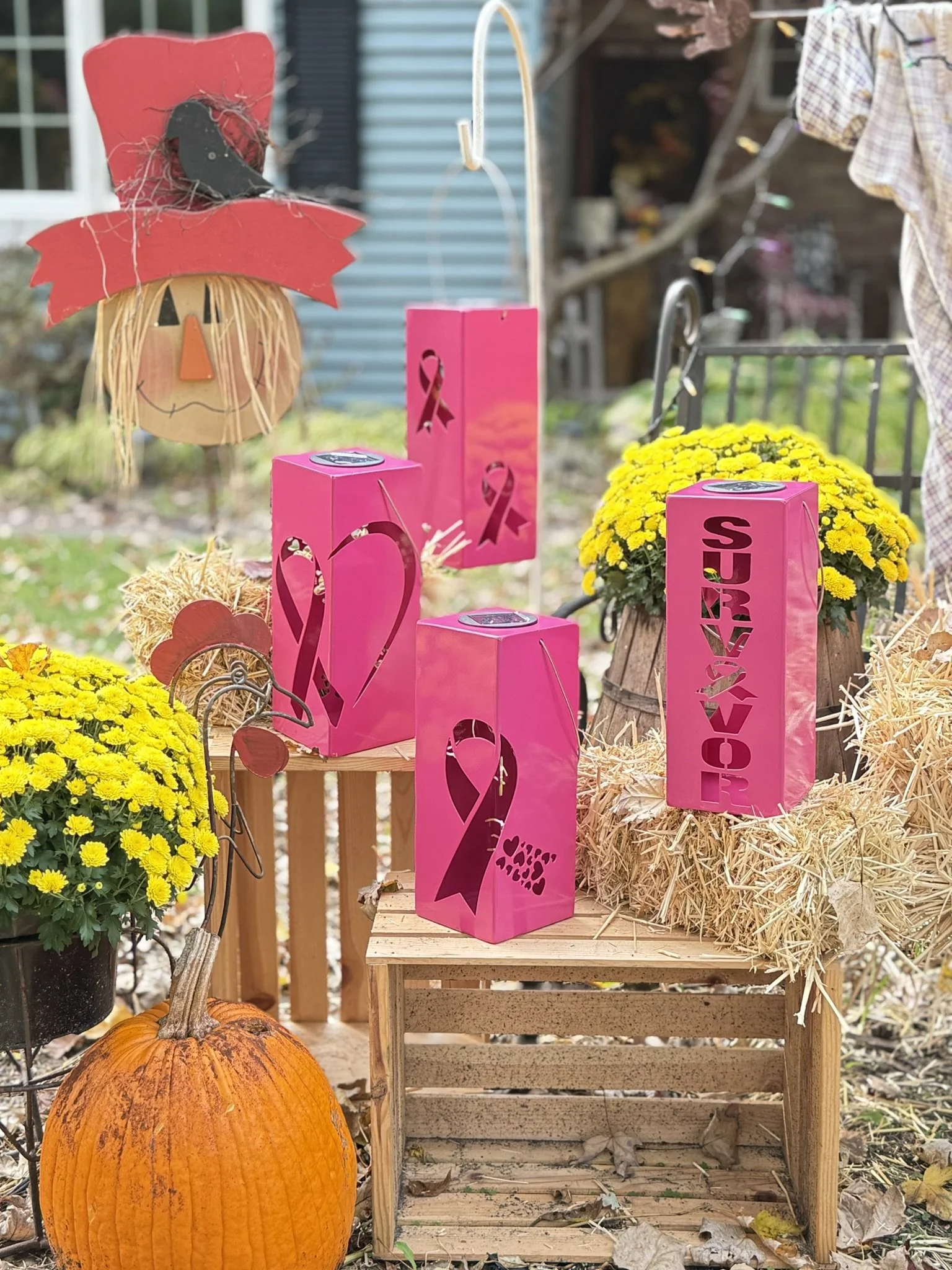 When illuminated, each lantern casts stunning shadows and pink reflections, transforming any garden, porch, or memorial space into a glowing tribute to awareness and strength.